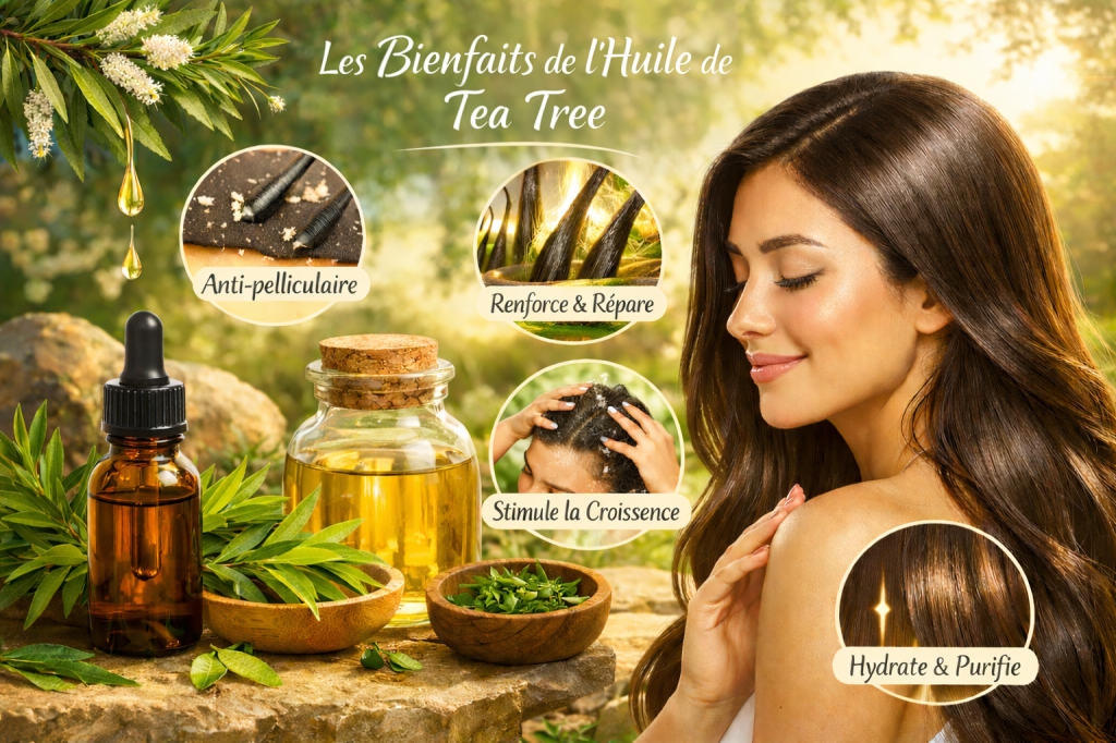 L'huile de tea tree est dotée d'une efficacité reconnue et prouvée. Ses bénéfices pour la santé capillaire sont nombreux et scientifiquement établies. Elle renferme des propriétés antibactériennes puissantes qui neutralisent les bactéries à l'origine des problèmes du cuir chevelu. De même, ses attributs antifongiques permettent de combattre les pellicules et autres troubles du cuir chevelu liés aux champignons. Elle stimule le flux sanguin, favorisant une croissance forte et saine des cheveux.