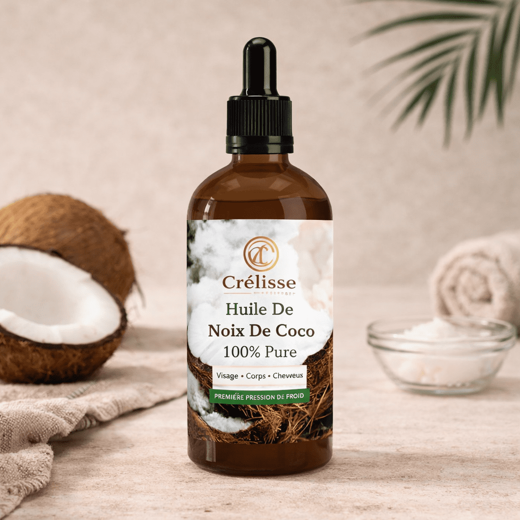 Huile de noix de coco 100% pure, idéale pour nourrir et hydrater la peau et les cheveux. Apporte douceur, protection et brillance naturelle. Parfaite pour les peaux sèches et les cheveux abîmés.